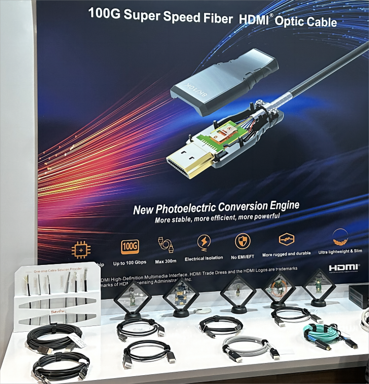 Central to Savlink’s exhibit were their pioneering developments in photonic conversion modules, the PureOptics series, and the versatile hybrid fiber-copper cables designed for HDMI/DP/USB/USB-C interfaces. These products are meticulously engineered to address complex challenges within critical industries such as healthcare, AR/VR, and aerospace, offering solutions that excel in electrical isolation, data security, and delivering high bandwidth.